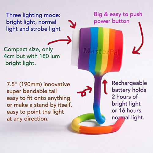 MasterPal Telego Light (Rainbow Edition): IP65 Waterproof Rechargeable Camp LED Lights, Book Light For Reading In Bed, Snap On LED Work Light, Easy To Fix And Direct The Lighting Direction