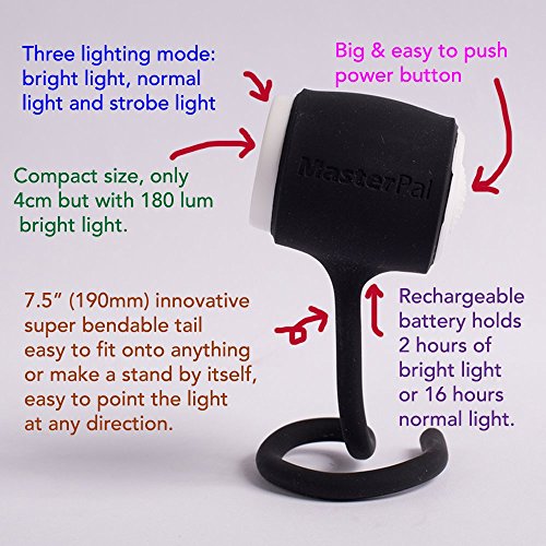MasterPal Telego Light (Black): IP65 Waterproof Rechargeable Camp LED Lights, Reading Light For Bed, Rechargeable LED Work Light, Easy To Fix And Direct The Lighting Direction