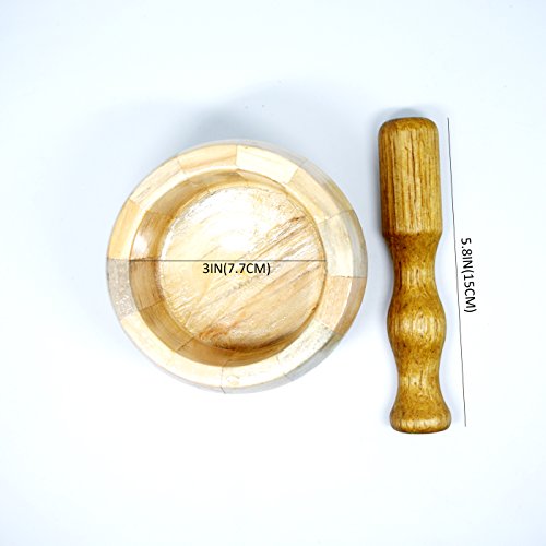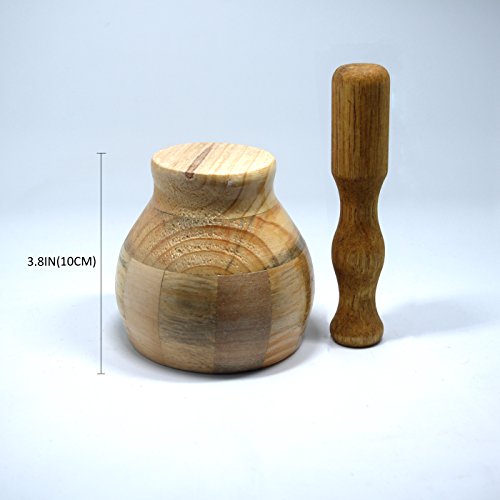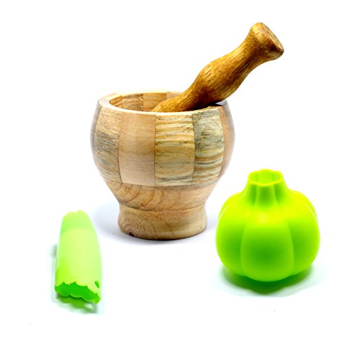Terya Wood Mortar and Pestle Garlic Spice Grinder Garlic Press Tool Kitchen Tools with Garlic Peeler(4 Inches)
