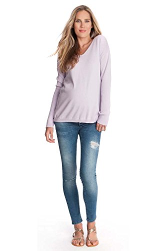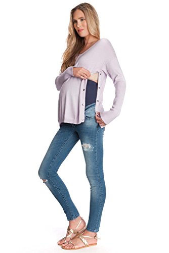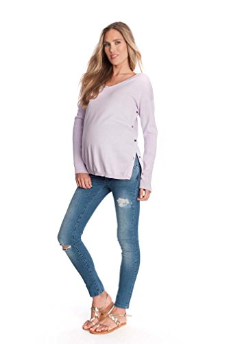 Binding : Apparel Product Description Crafted in a luxurious cotton cashmere blend, The stylish striped Poppy maternity and nursing sweater by Seraphine is a super soft addition to your weekend wardrobe. A relaxed horizontal stripe in navy marl ivory lend this sweater a trendy nautical vibe ? perfect for pairing with your favorite maternity jeans. The soft knit stretches to provide a flexible fit at every stage of pregnancy, while stylish snaps to the sides open up to allow easy access for nursing after baby is born. 95% Cotton, 5% Cashmere Machine wash cold gentle cycle/Lay flat to dry 0