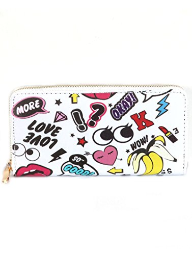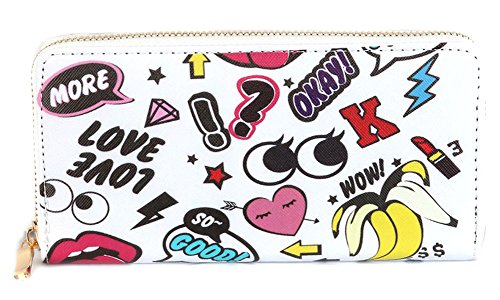 (Variety Gift Shop Fashion Jewelry)/Accessories/Wallets, Money Key Organizers/DIRECT FROM USA/Love, WOW Characters Print Vinyl Clutch Wallet Bag (EKB19157MLT)