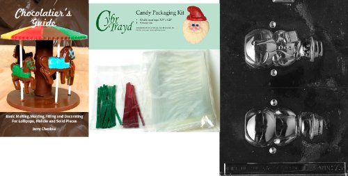 Cybrtrayd Medium Hollow Snowman Chocolate Mold with Chocolatier's Bundle of 50 Cello Bags, 25 Green and 25 Red Twist Ties and Chocolatier's Guide