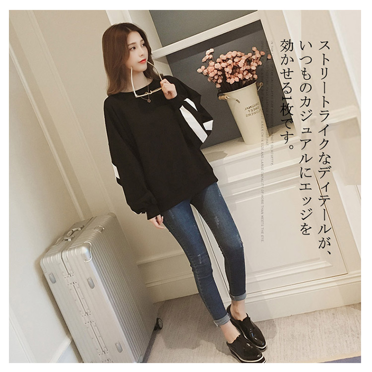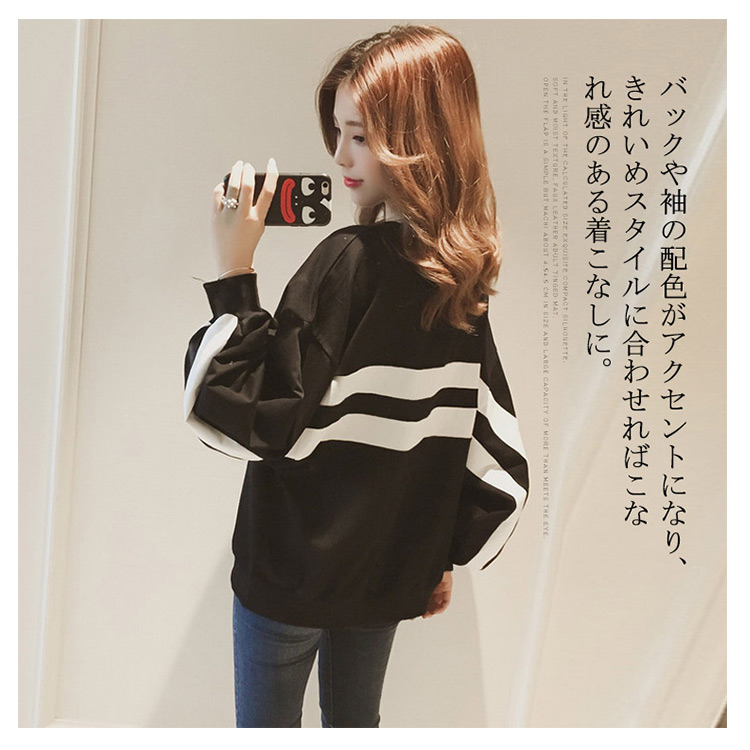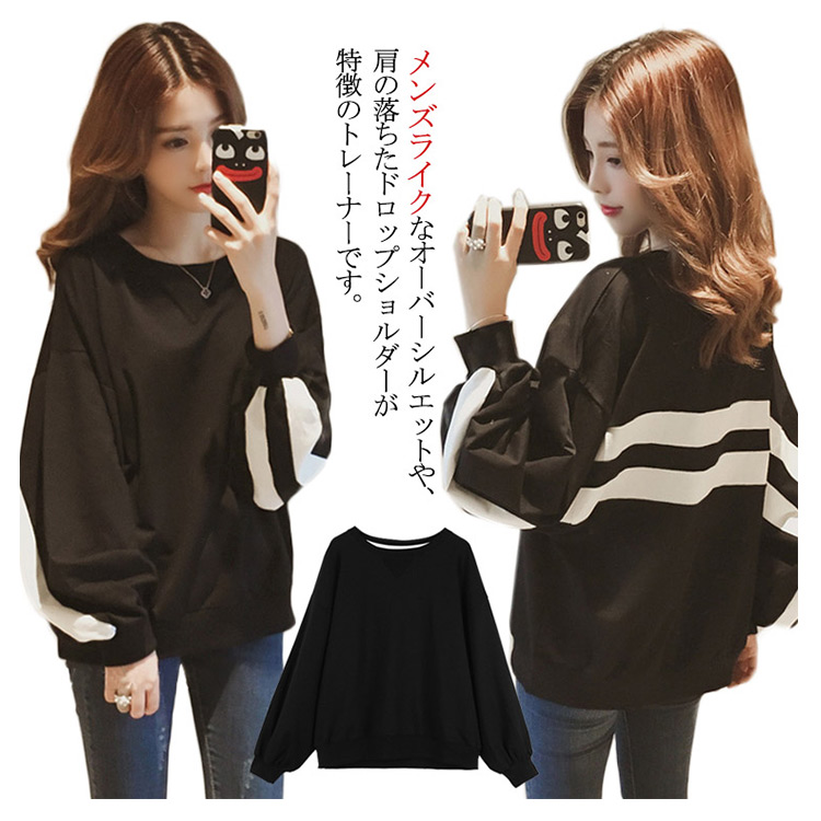 | メンズライクなオーバーシルエットや、肩の落ちたドロップショルダーが特徴のトレーナーです。広めの襟ぐりで女性らしく着ていただけます。バックや袖の配色がアクセントになり、きれいめスタイルに合わせればこなれ感のある着こなしに。ストリートライクなディテールが、いつものカジュアルにエッジを効かせる1枚です。 | |