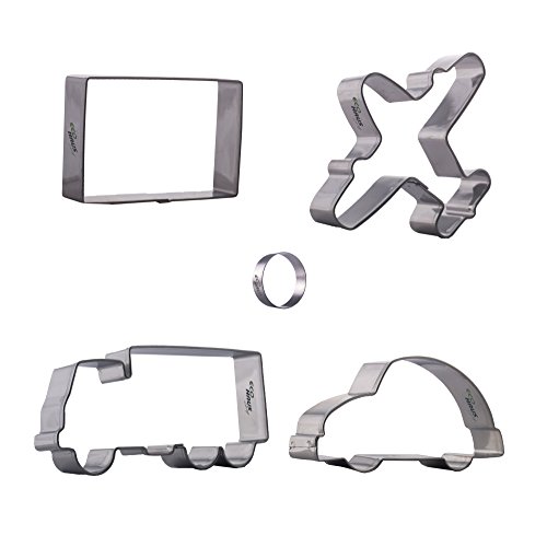 Eco Cutters for Kids - Stainless Steel Transportation Pastry Cutter Set - 5 Pcs with Rectangle Shaped Cutter Car Airplane Truck - Easy To Clean - Ideal for Sandwich Fruits Fondant Dough Vegetables ..