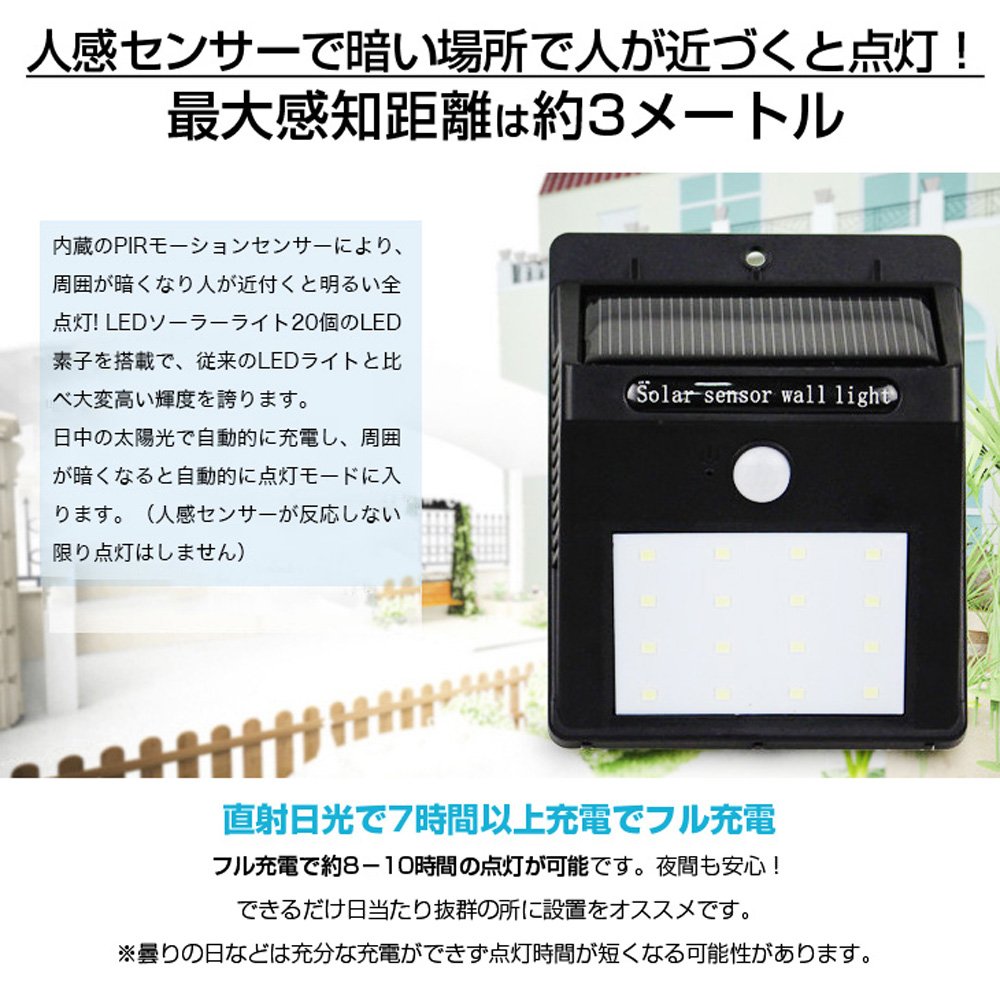 (It can be thought that there is a risk that the lighting time of the light will be shortened because cloudy days etc. can not be charged sufficiently.)