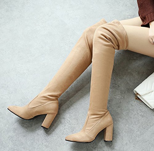 Binding : Apparel Product Description Elegant women should have various boots. A pair of suitable boots can add much charm to you. Here is a pair of pretty and cool boots for you. They adopt classic pointed toe design, which can embellish your foot type better. The high heels make them not only comfortable to wear, but also look sexy. The pull on design is very convenient and artistic. The outsoles are made of rubber, wearproof and non-skid. In addition, they are easy matching. As a trendsetter, you are worth it! Aisun is the legal brand, registered in the United States Patent and Trademark Office. All rights reserved 0