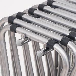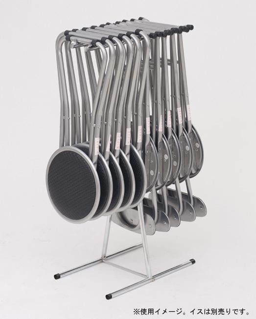 パイプイスを引っ掛けるだけでOK。手軽に簡単にパイプイスを収納できるスタンドです。一般的な折りたたみ式のパイプイスを10台程度収納できます。 |