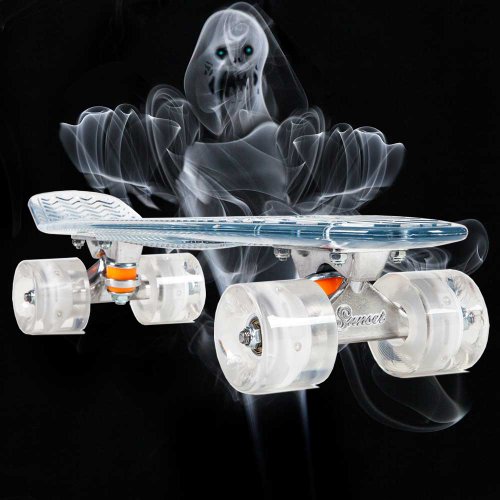 -. Title : Sunset Skateboards Ghost Complete Skateboard with White Wheels, 22-Inch, Clear