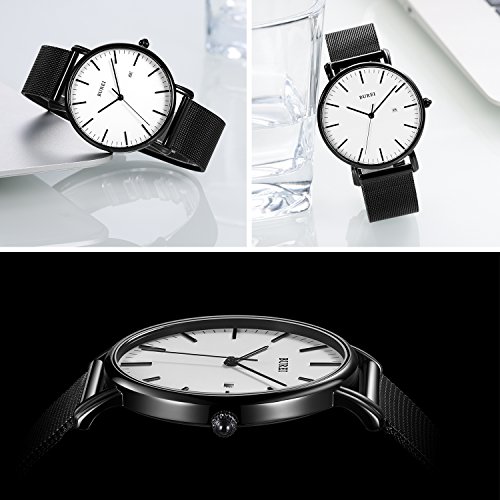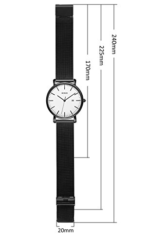 Brand, Seller, or Collection Name:BUREI Part Number:SM19003 Model Year:2017 Item Shape:Round Dial window material type:Mineral Display Type:Analog Clasp:Hook Buckle Case material:Stainless steel Case diameter:41 millimeters Case Thickness:6.6 millimeters Band Material:Stainless steel Band length:Men's Standard Band width:20 millimeters Band Color:Black Dial color:White Calendar:Date Special features:Date Movement:Quartz Water resistant depth:30 Meters