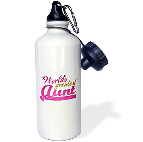 3dRose wb_151285_1 Worlds Greatest Aunt-Best Auntie Ever-Pink and Gold Text-Faux Sparkles-Matte Glitter-Look Sports Water Bottle, 21 oz, White