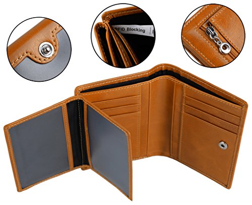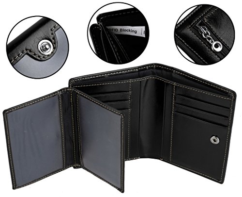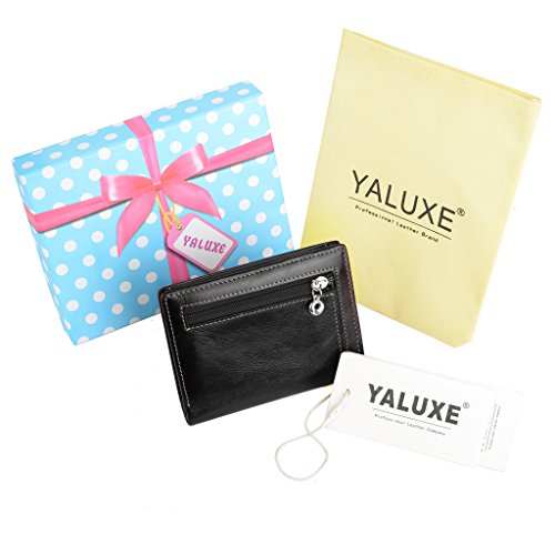 -. Binding : Office Product -. Brand : YALUXE -. Department : womens -. Feature : SAFETY. P.R.IVACY. SECURITY. - Equipped with military grade RFID SECURE material, this RFID BLOCKING mini wallet effectively protects your ID and credit cards from RFID readers and scanners! Shield against electronic pickpocketing with this wallet! / Cowhide Leather with silver-tone hardware. Compact yet small enough to put into your coat pocket/ small crossbody purse. / 16 card holders including 3 photo slots; 1 back coin pocket; 2 bill sections. It stays closed and flat when stuffed. / Clear layout and trifold design is designed for easy access to cash and credit cards you need. Come in a cute Gift Box and ready to be gift for someone who likes compact small wallets. / Dimensions: 3.74" L x 4.72"H x 0.98" W. This is a little wallet. -. PackageQuantity : 1 -. ProductGroup : Office Product -. ProductTypeName : OFFICE_PRODUCTS -. Size : Small -. Title : YALUXE Women's RFID Blocking Leather Compact Small Billfold Wallet with Coin Pocket