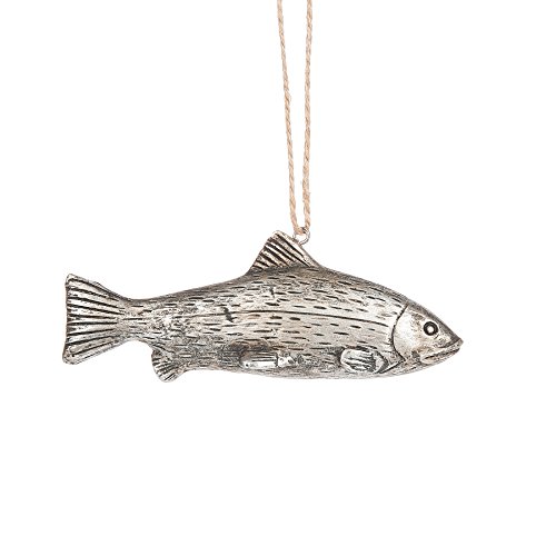Fish Antique Silvertone 4.5 x 1.5 Inch Resin Christmas Ornament Figurine