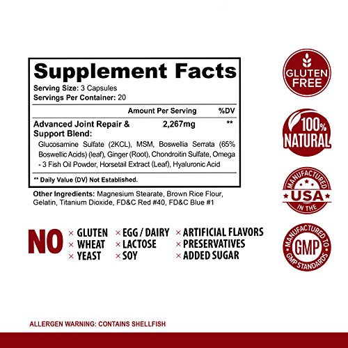 -. Feature : The top selling overall joint health and support formula / Become active again - Supports Healthy Joints / 60 capsules per bottle. Take 3 capsules per day for the first 3 weeks. You may take 2 caps daily after that / May Decreas stiffness, may help joint health