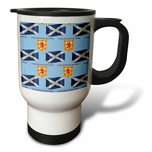 3dRose tm_165747_1 Scotland Flag, Coat of Arms and Motto Pattern on Light Blue Background, Travel Mug, 14-Ounce, Stainless Steel
