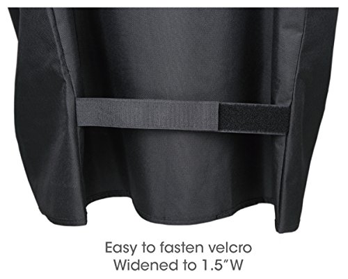 -. Feature : Color fading resistant fabric with vinyl coating material construction,all weather protection for your grill against snow,rain,hail,wind,dust and dirt,etc / Structured hiding mesh vents at both sides for air circulation to let moisture escape and protect your grill from mildew / Handles at two sides for easy fitting,removal and hanging / Widened velcros at both ends to fasten sturdier and prevent cover from slipping or blowing off / Measures 72" width by 22.5" depth and 42" height. Be sure to measure your grill first to determine the correct cover size.