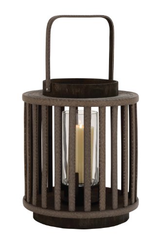 -. Title : Benzara 76160 Lining Designed Striking Wood Glass Lantern