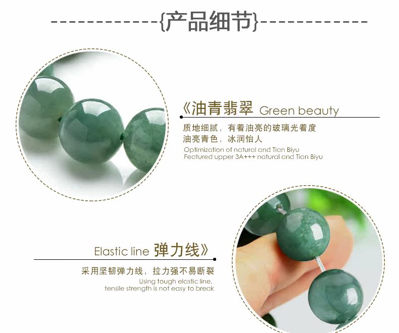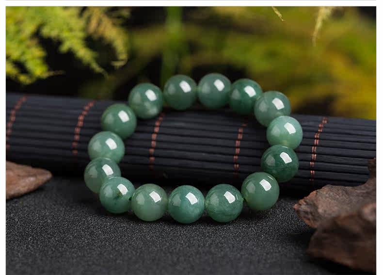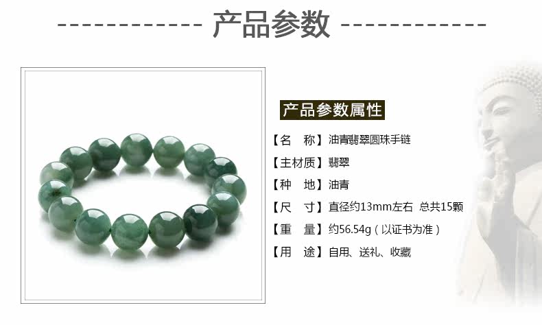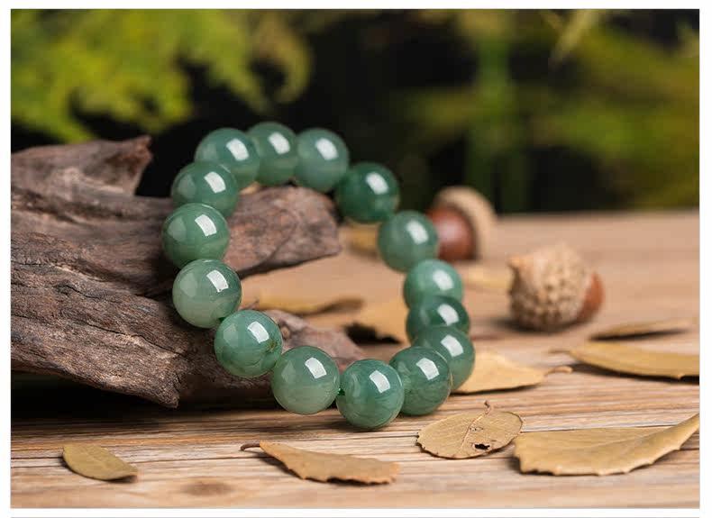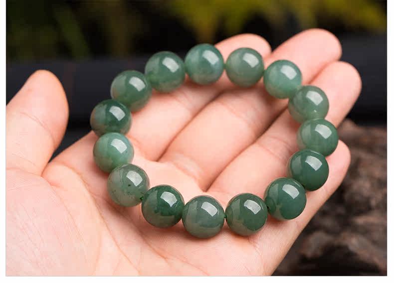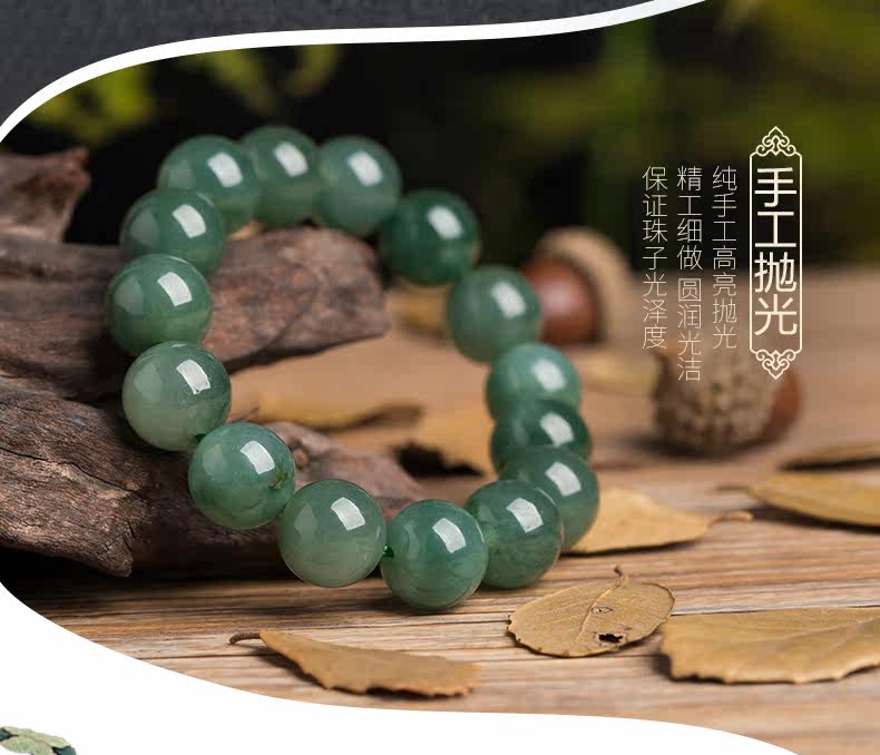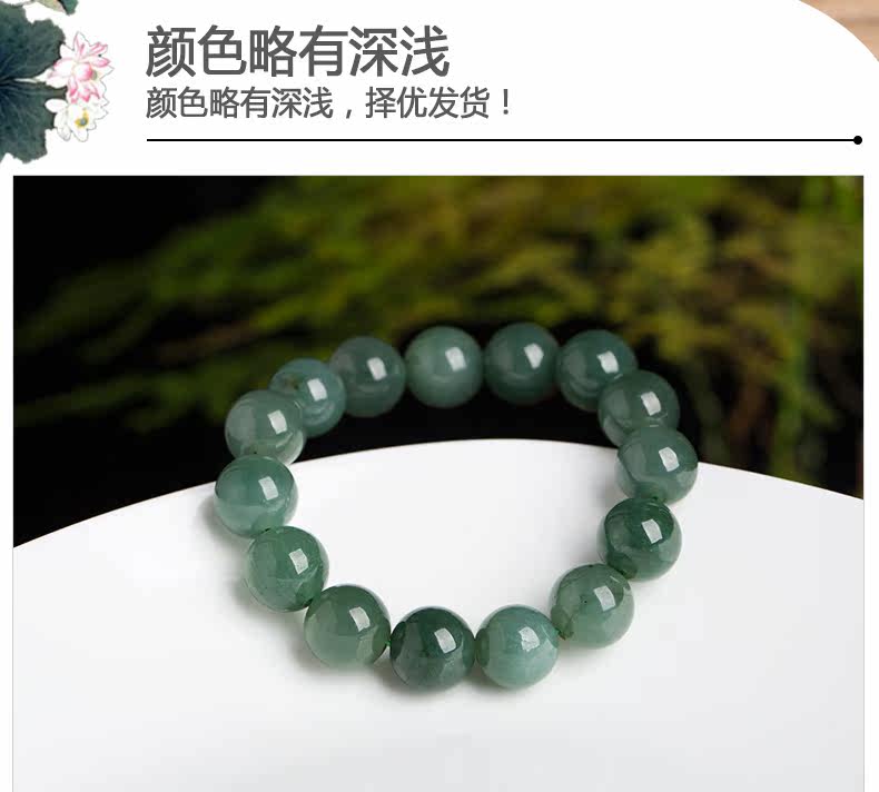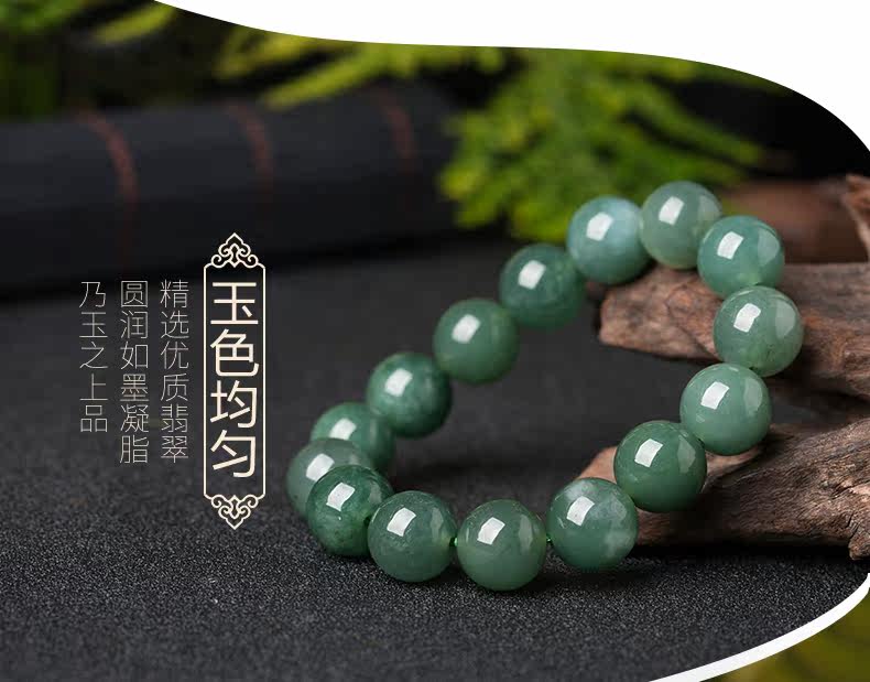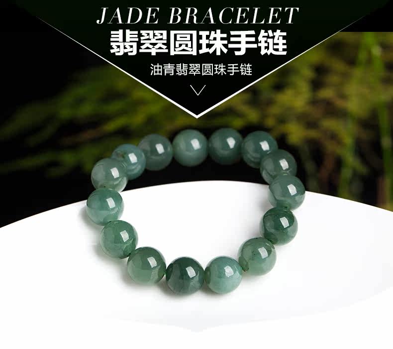 天然玉石玉器缅甸a货翡翠手链 冰油青佛珠圆珠玉手链