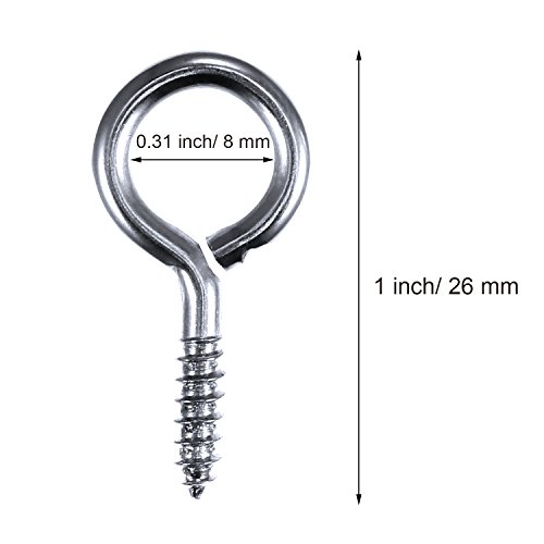 - Dimension: the screw eye length is 1 inch/ 26 mm, inner diameter is 0.31 inch/ 8 mm, outer diameter is 0.5 inch/ 12.8 mm, and screw thread length is 0.39 inch/ 10 mm