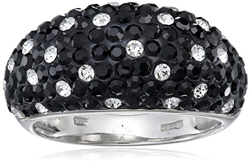 Sterling Silver Jet Crystal and Clear Crystal Cluster Ring, Size 7