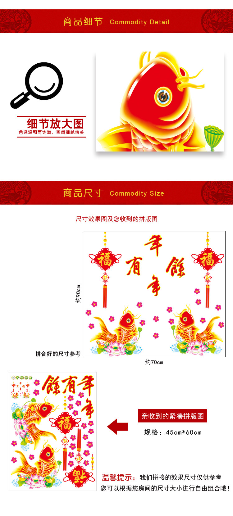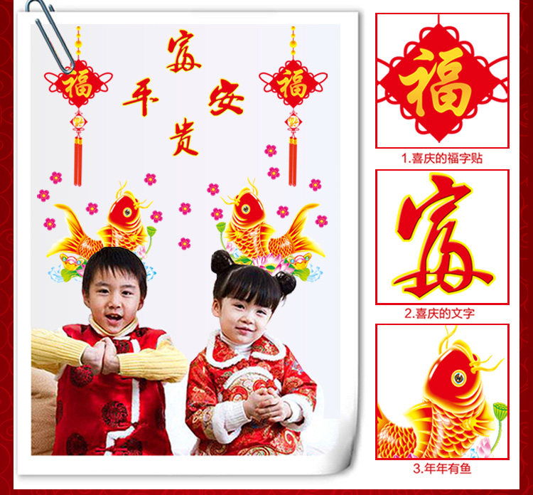 E. Auspicious year after year have fish glass door double-sided self-adhesive painting New Year Spring home living room bedroom wall stickers
