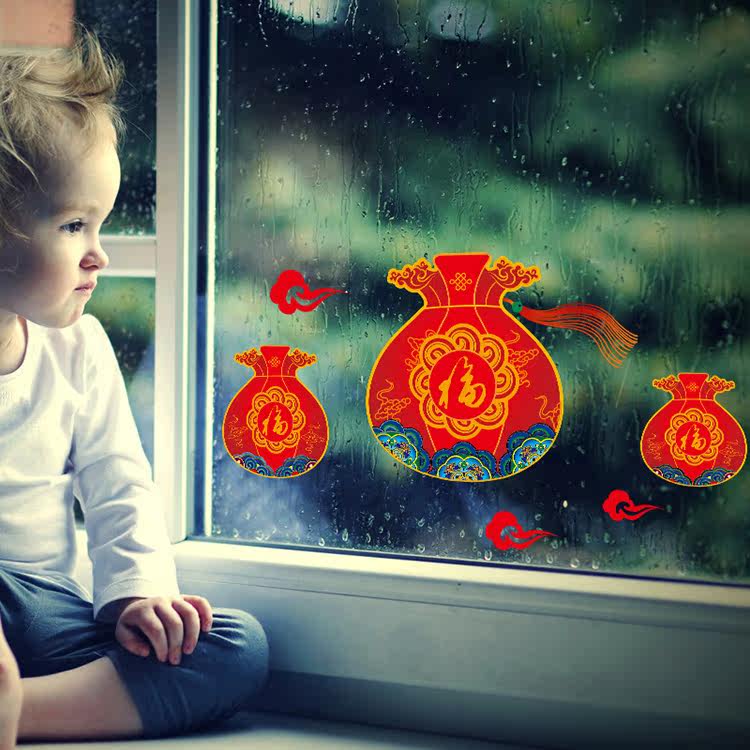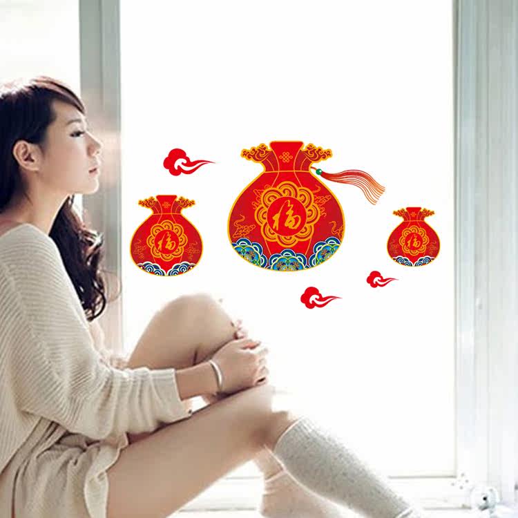 G.2017 New Year's Day Spring Festival Wall Stickers Removable Self-Adhesive Store Shops Window Glass Doors Decorative Stickers Window Grilles