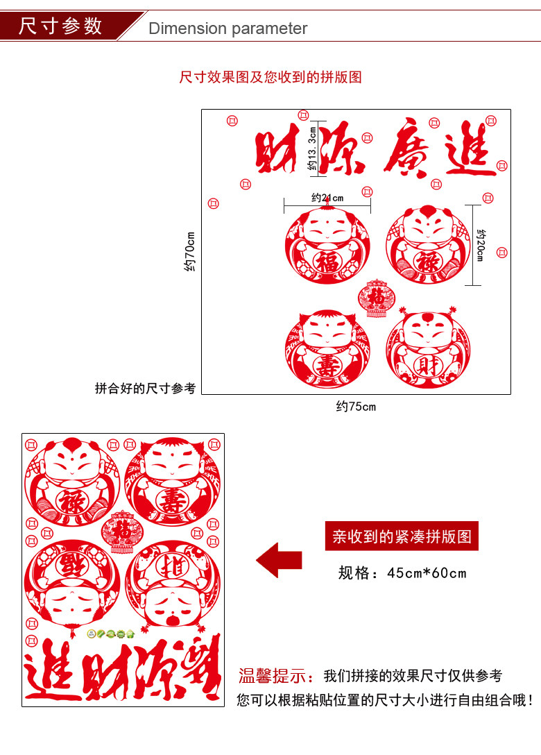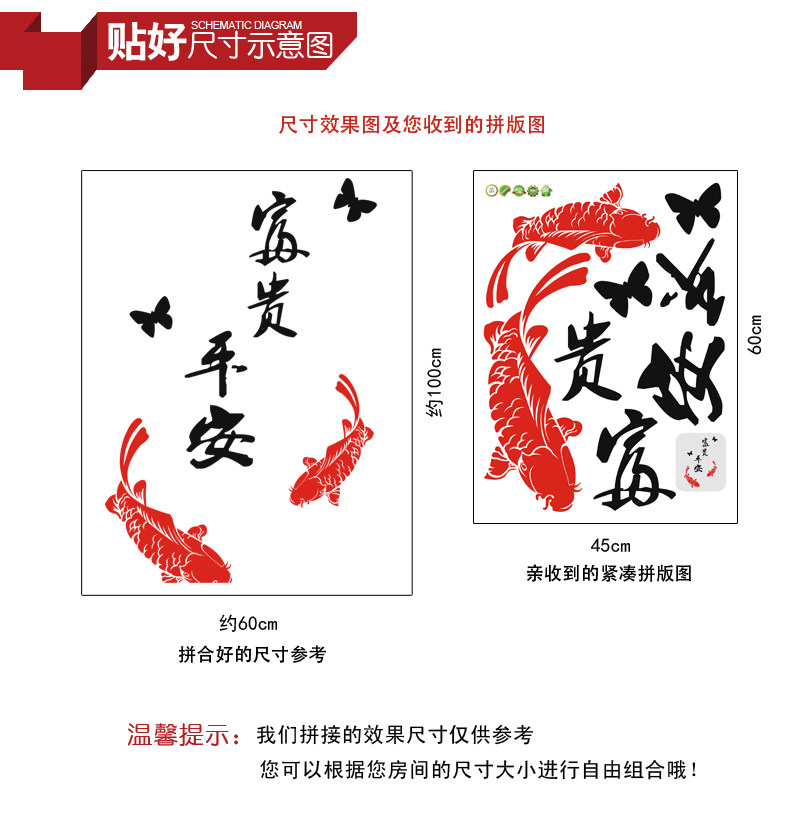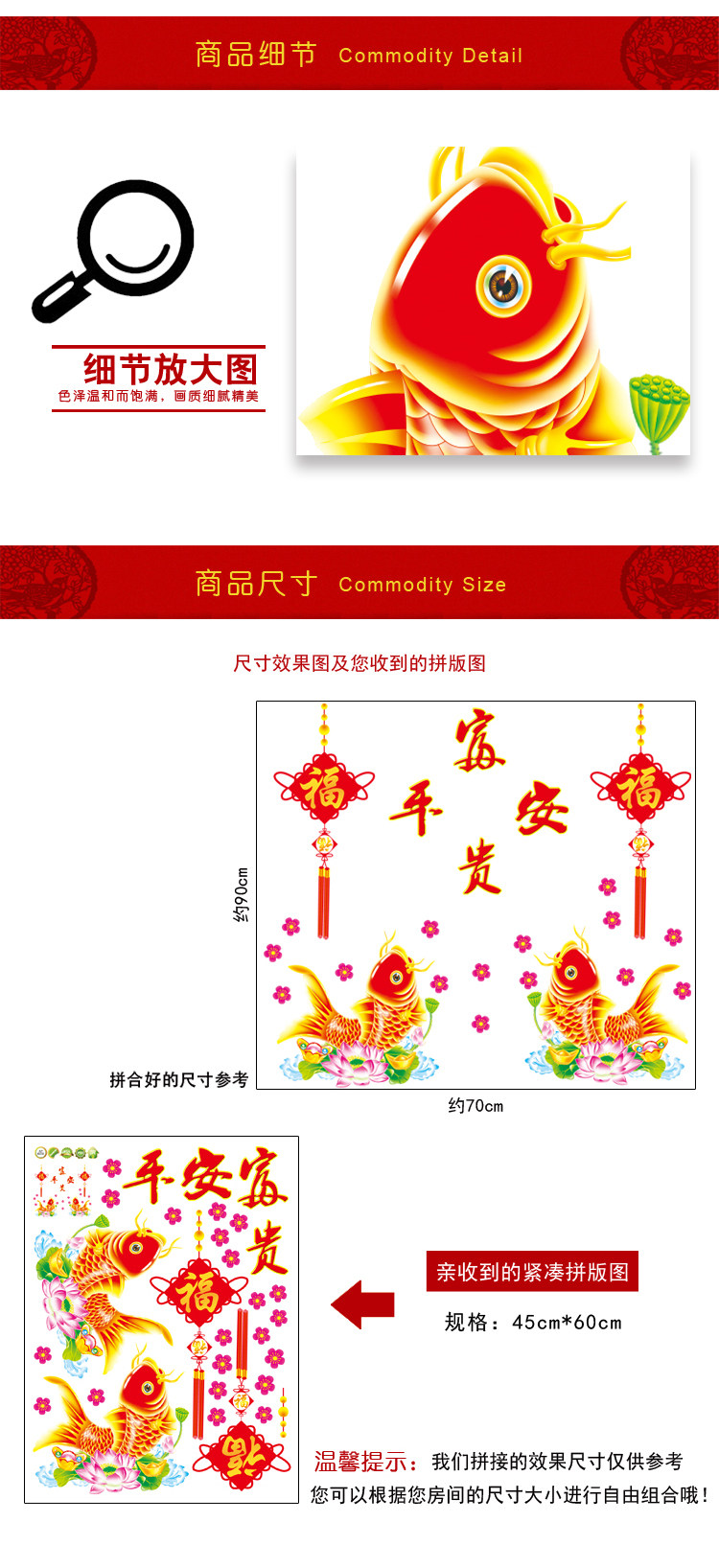 D. New Year Spring home living room bedroom wall affixed to the wealth of the peace of the year have fish shop glass door self-adhesive painting