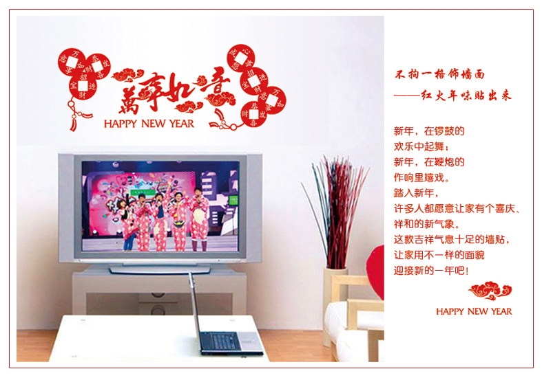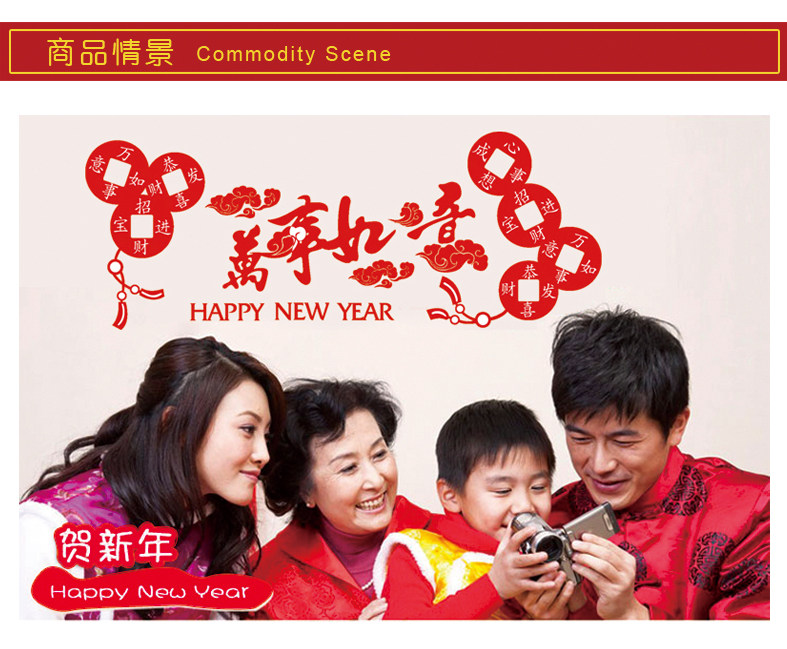 C. New Year Spring Home Living Room Bedroom Wall Stickers Window Glass Removal Stickers Congratulations New Year