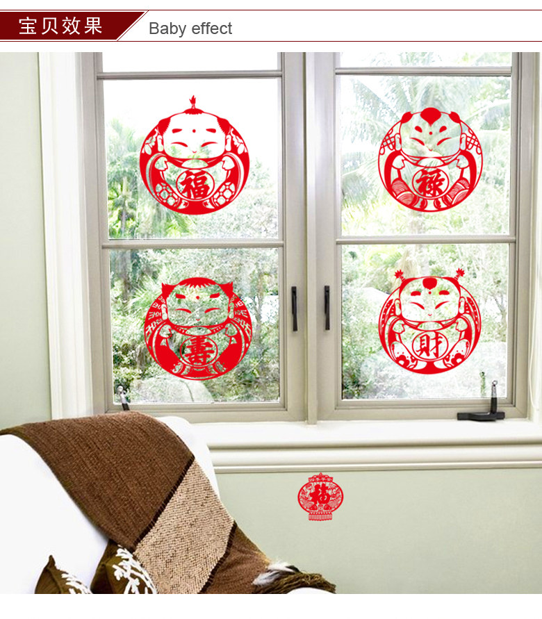 H. New Year Spring Festival home window stickers Fortune Shoucai four puzzle window glass double-sided New Year decorations Removable stickers