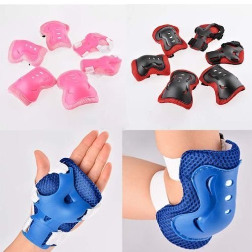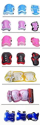-. Feature : ALL-ROUND PROTECTION: strong enough for protection, flexible to absorb some of the impact when kids start to skate, rollerblading, etc. / HARD & DURABLE SHELL: high density & rough plastic plate construction for abrasion resistance, thickened padded for comfortable wear. / ALLOW ROOM TO GROW: elastic and adjustable straps allow room to grow, suitbale for 3-8 years old children with average size. / GREAT ADDITION: safety sport gear for tricycle, roller hockey, riding scooters, skating, mountain biking or other sports. / COMPLETE SET: this set comes with 6 pcs, including 2pcs knee pads, 2pcs elbow pads and 2pcs wrist guards.