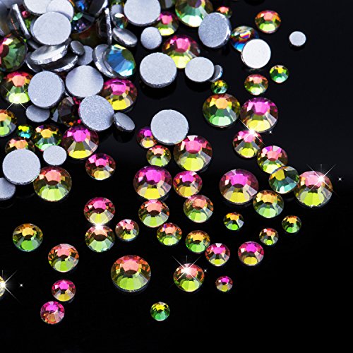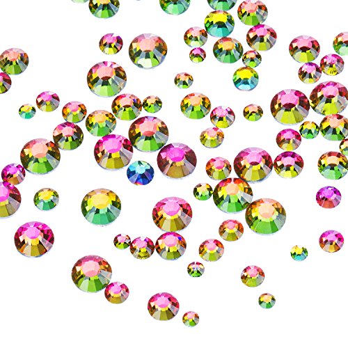 Outus 1000 Pieces Multi AB Color Flat Back Rhinestones Round Crystal Gems 2 mm - 5 mm, 5 Sizes