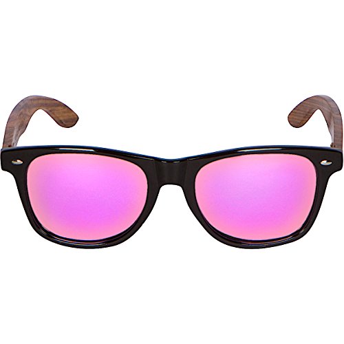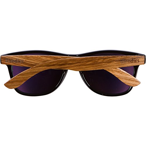 Product Description Woodies Walnut Wood Sunglasses offer a combination of 100% Walnut Wood arms that support a wayfarer style plastic frame. Each pair is completely unique and has its own wood striations. The lightweight Walnut Wood offers a comfortable fit that is durable and sturdy at the same time. Our unique stainless-steel, double-spring hinges are sturdy and designed to keep their shape year after year. The lenses are blue mirror and polarized, offering 100% UVA/UVB protection even in intense lighting conditions. These glasses are stylish, durable, and natural. Each pair includes a durable black carrying case, a microfiber lens cleaning cloth and a wood guitar pick! 30-Day Money back Guarantee 0