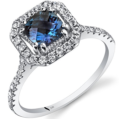 -. Binding : Jewelry -. Brand : Peora -. Department : womens -. Feature : Lab Created Alexandrite changes Color from Green-Blue to Purple / Ring is in 14 Karat White Gold / White Topaz Accent Stones / Perfect Gift for Mothers Day, Graduation, Birthdays, Weddings, Anniversary / Includes Gift Box and 30 Day Money Back Guarantee -. Label : Peora -. Manufacturer : Peora -. Model : R62412 -. MPN : R62412 -. PartNumber : R62412 -. ProductGroup : Jewelry -. ProductTypeName : FASHIONRING -. Publisher : Peora -. Studio : Peora -. Title : 14K White Gold Created Alexandrite Cushion Cut Halo Ring 1.00 Carats Sizes 5 to 9