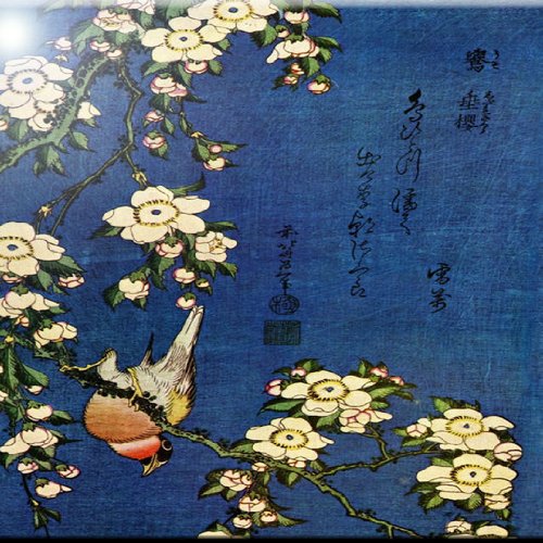 Rikki Knight RK-6intilec-3217 6" X 6" Katsushika Hokusai Art Bullfinch & Drooping Cherry Design Ceramic Art Tile