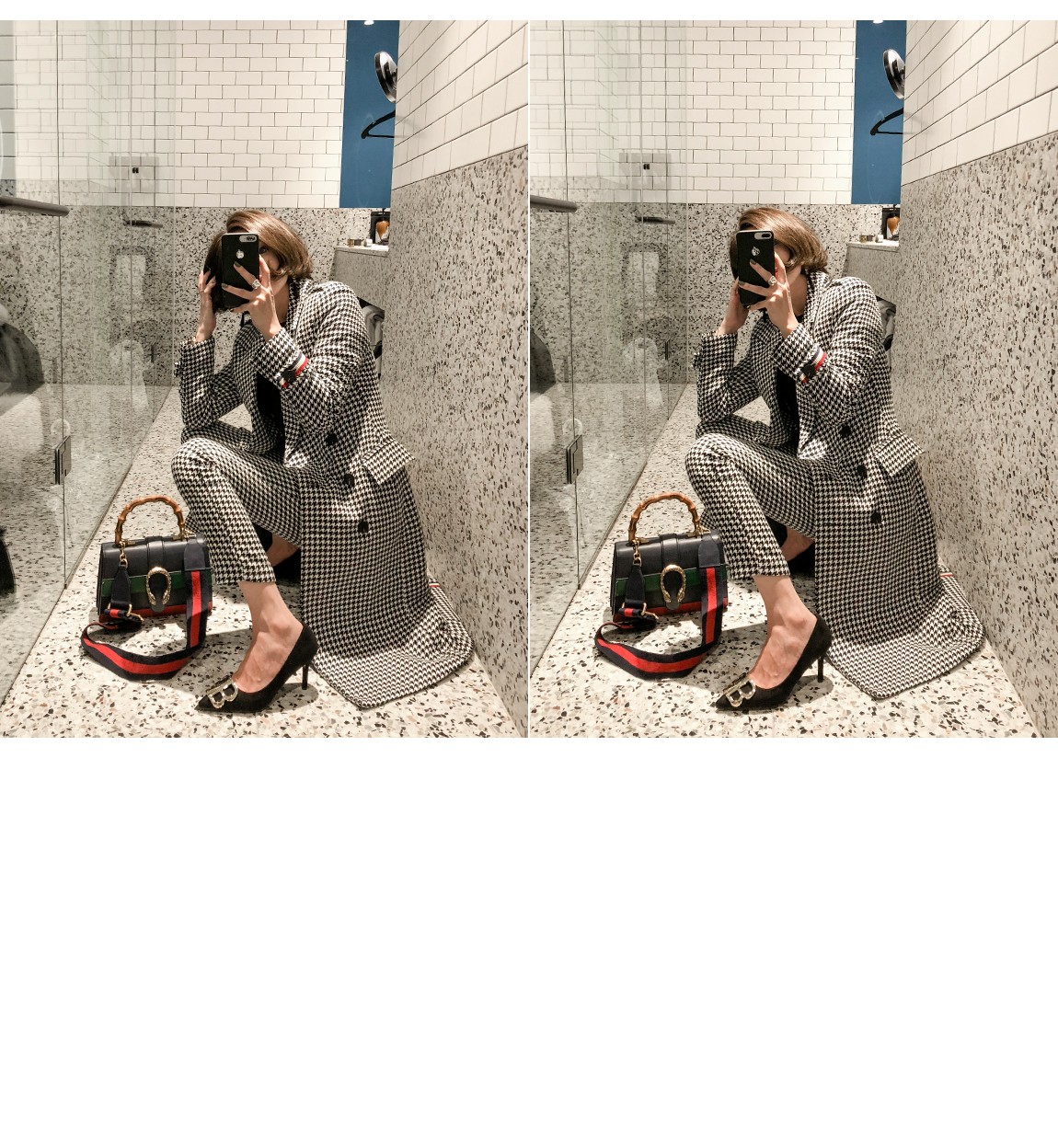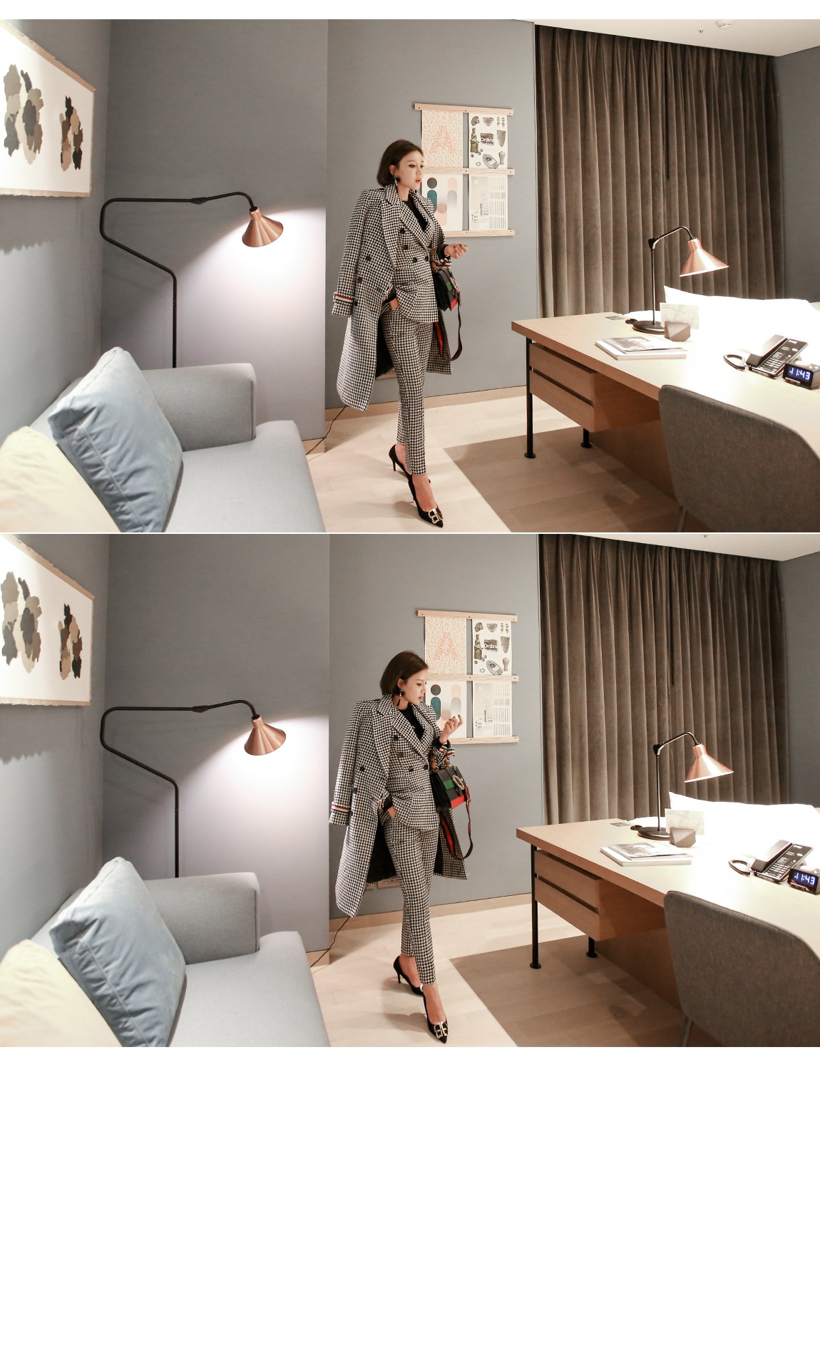 クラシックなハウンドのチェックにモダンさを加えたコートです