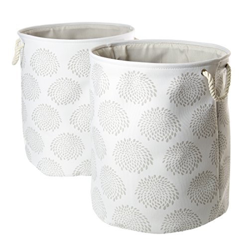 Seville Classics Large Round Collapsible Fabric Laundry Hamper 2-Piece Set Print, Blooming Floral
