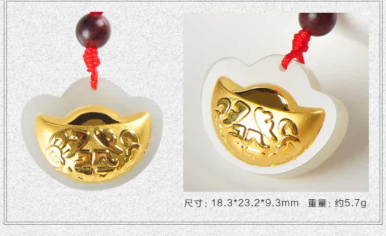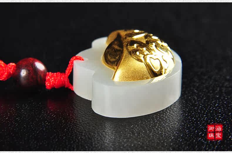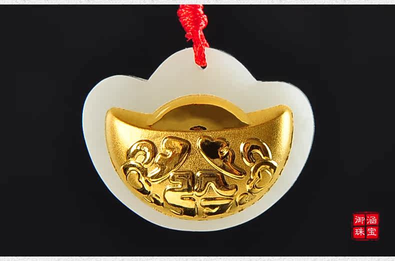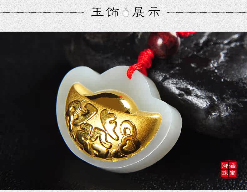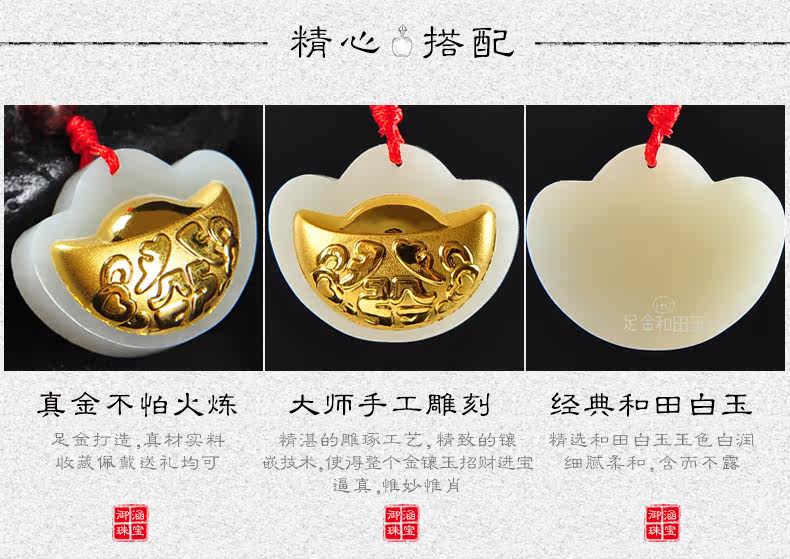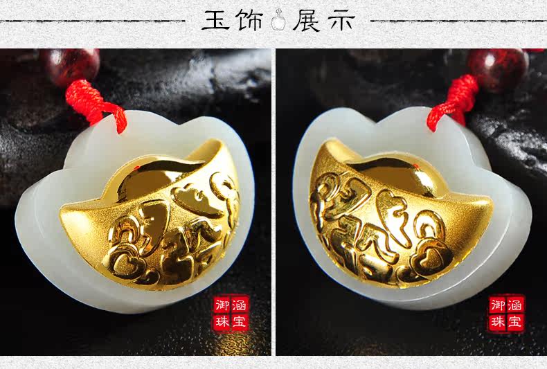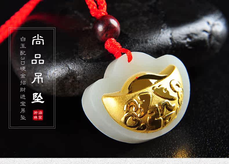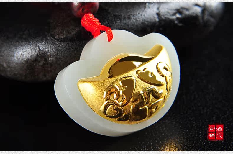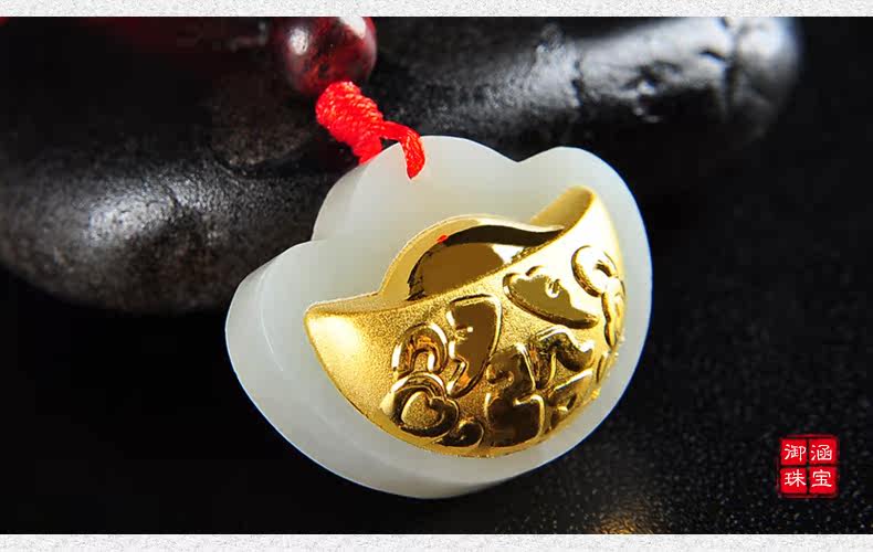 黄金镶玉吊坠天然和田玉白玉镶嵌足金挂件宝宝项坠