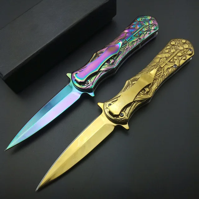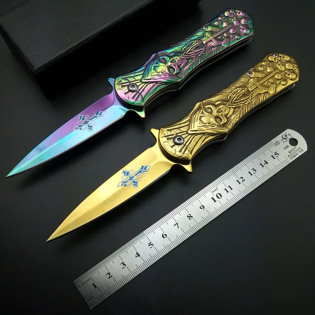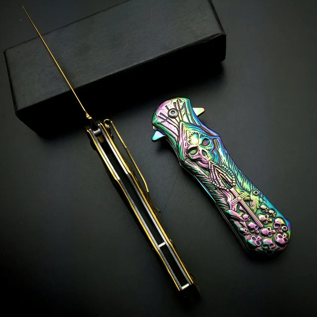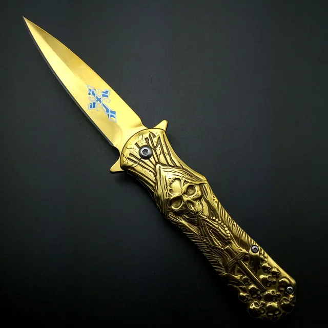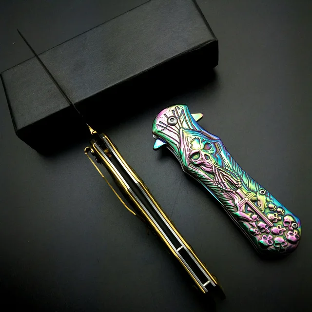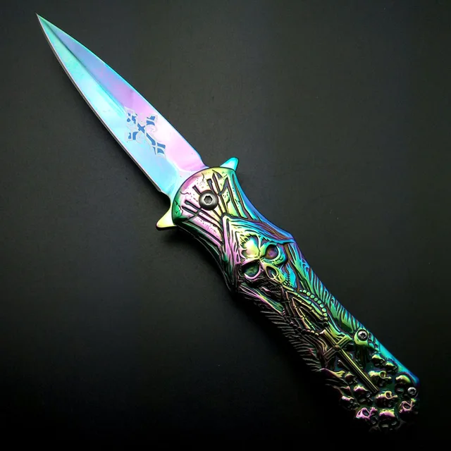 | [해외] 최고의 크로스 인쇄 블레이드 죽음 두개골 오목 야외 전술 나이프 솔리드 핸들 캠핑 사냥 생존 도구 EDC 멋진 선물 |