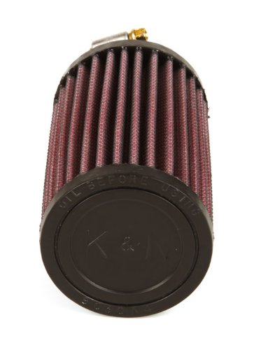 K&N RU-0210 Universal Clamp-On Air Filter: Round Straight; 1.688 in (43 mm) Flange ID; 5 in (127 mm) Height; 3 in (76 mm) Base; 3 in (76 mm) Top
