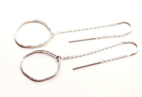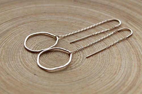 -. Title : Threader Earrings with oganic shape hoops in gold filled or sterling silver. Modern jewelry by EverywhereUR