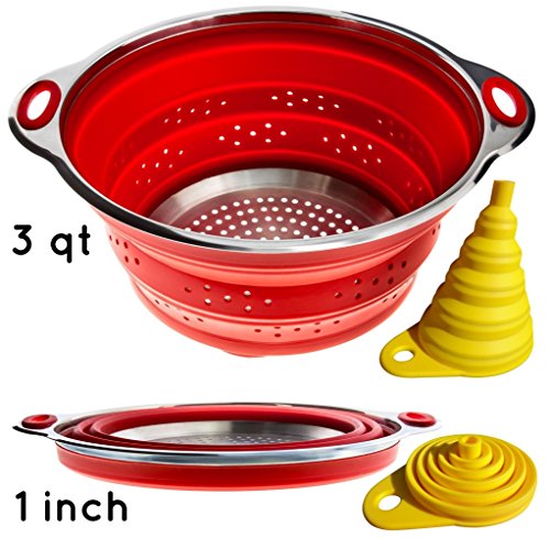 -. Title : Combo of Top-notch Collapsible Colander + Foldable Funnel. Top Quality Stainless Steel and Silicone Strainer. 3 & 2 Quarts. Gift Idea for Women - Mother or Wife, Her Birthday, Wedding or Small Kitchen