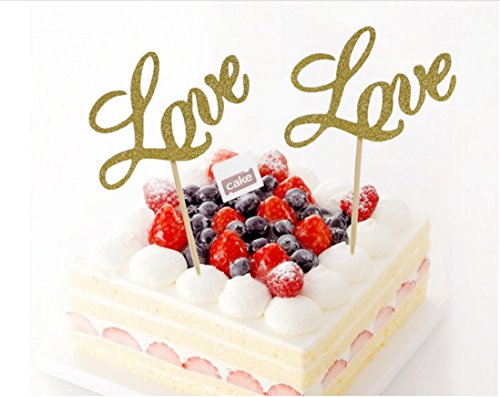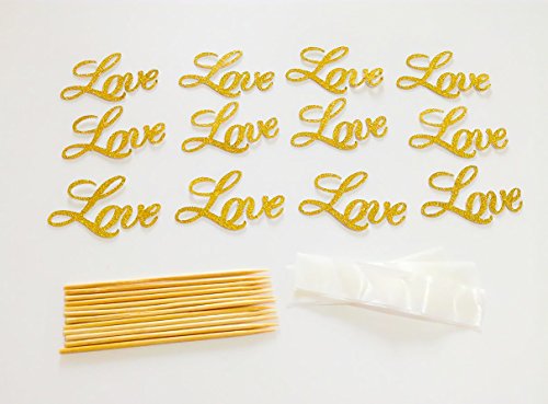 Set of 12 Pcs Love Cupcake Topper, Golden "Love" Cupcake Topper For Birhtday Party, Wedding Party Decoration
