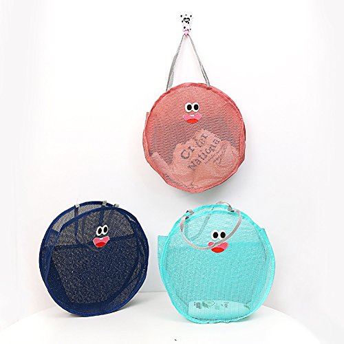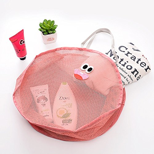 Yarssir portable swim travel mesh beach bag nylon mesh tote handheld round bag for clothes towel toys pink cyan set of 2