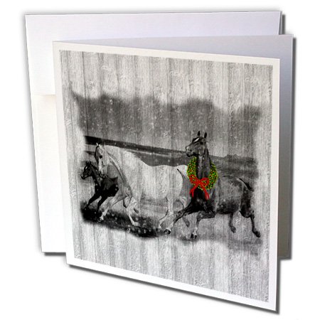 Western Wild Horses on Faded Wood with Christmas Wreath - Greeting Cards, 6 x 6 inches, set of 6 (gc_62831_1)