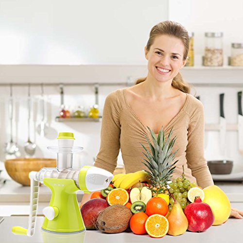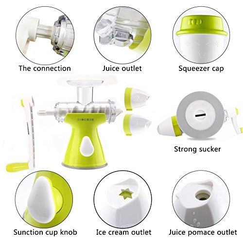 -. Title : Bon Venu Slow Manual Juicer - Fruits Vegetables Hand Juicer - Suction Base- Kids Juicer Ice-cream Maker Juice Extractor Masticating Extruder Manual Hand Crank Single Auger Juicer