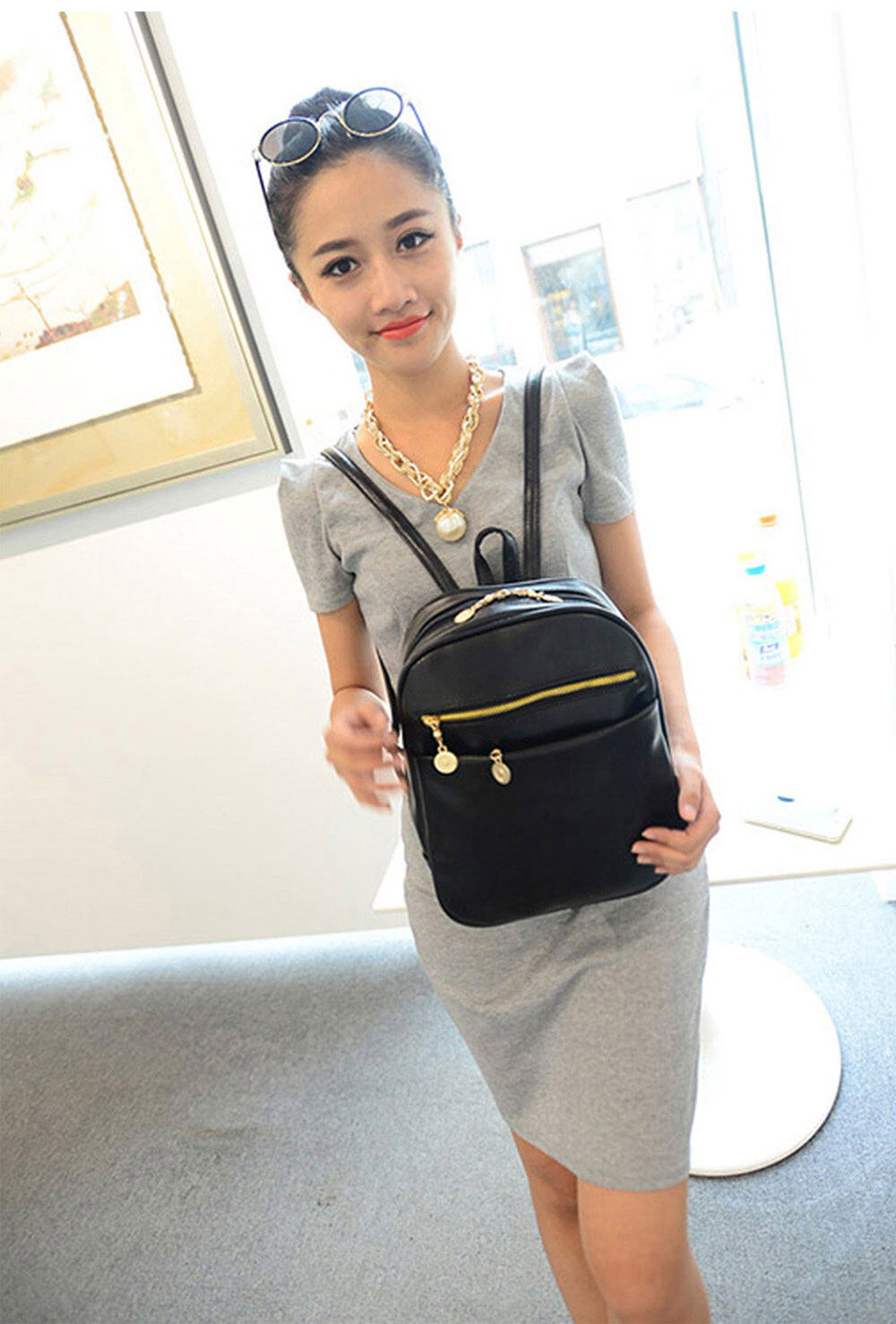 Product details of Guapabien Ladder Lock Button Shape Zipper Head Solid Color PortableBag Backpack for Lady