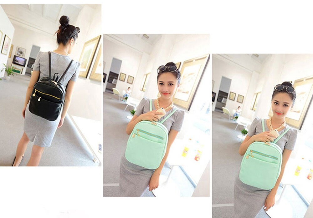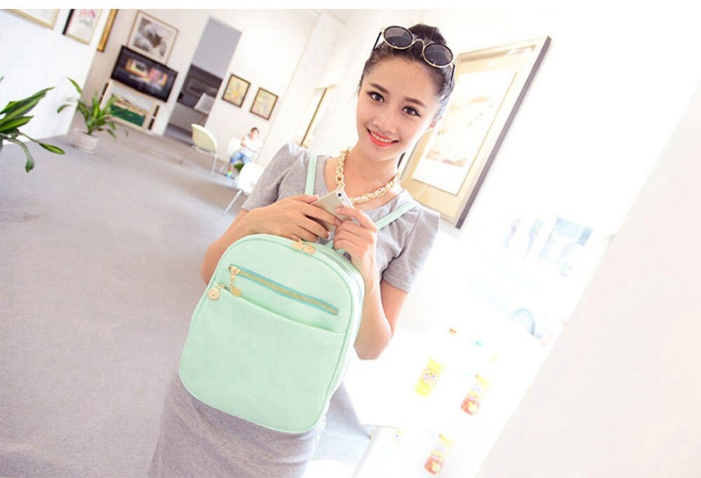 Guapabien Ladder Lock ButtonShape Zipper Head Solid Color Portable Bag Backpack forLady