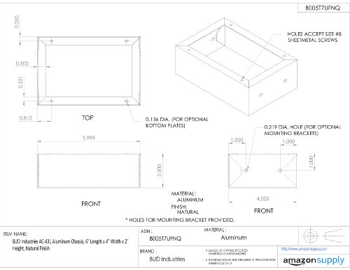 BUD Industries AC-431 Aluminum Chassis, 6" Length x 4" Width x 2" Height, Natural Finish