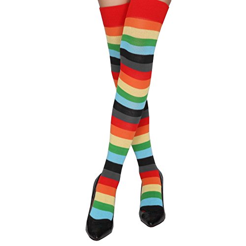 -. Binding : Apparel -. Brand : Poplar -. Department : womens -. IsAdultProduct : 0 -. ProductGroup : Apparel -. ProductTypeName : SOCKSHOSIERY -. Size : One Size -. Title : Black Green Red Rainbow Socks Stripes Over Knee for Women & Men