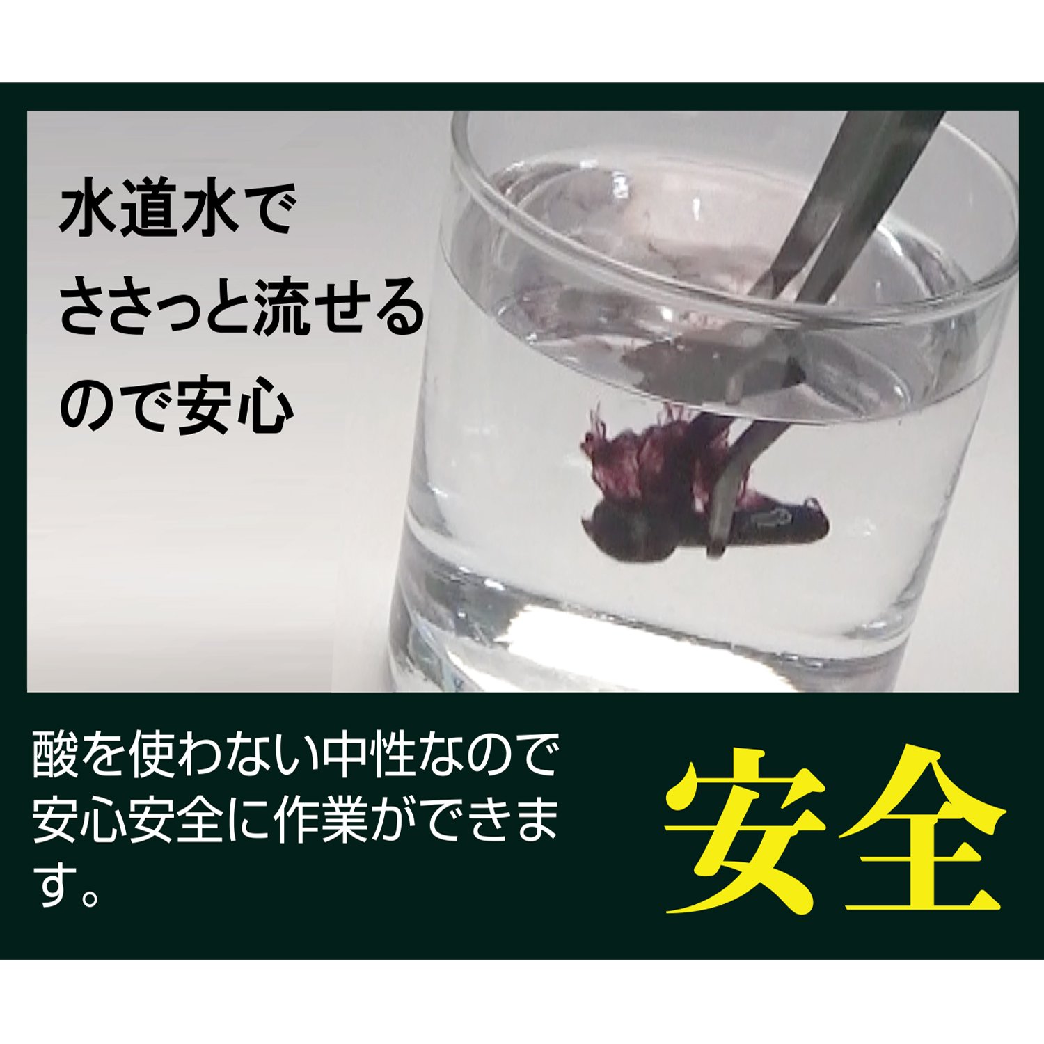 It is neutral so you can work safely (it does not contain acid or alkali).