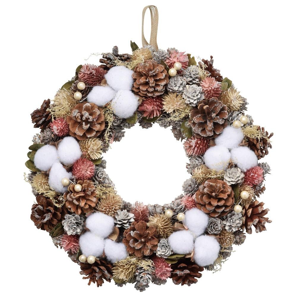 まるで雪が積もっているような幻想的なリース。